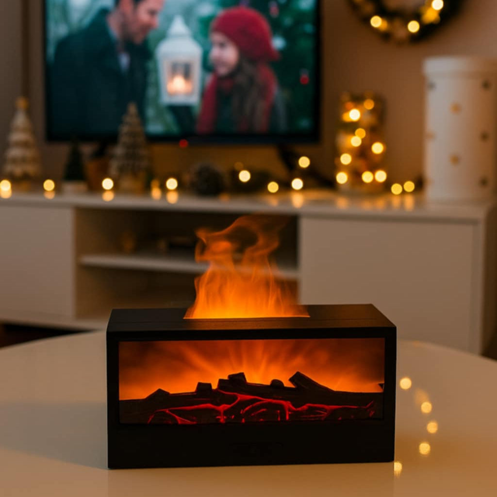 Stwórz w swoim domu atmosferę jak z przytulnej kawiarni lub górskiego domku — dzięki aromatycznemu kominkowi z efektem płomienia połączonemu z funkcją nawilżacza i dyfuzora zapachowego. To eleganckie i wielofunkcyjne urządzenie to idealne dopełnienie wystroju oraz przyjemny sposób na codzienny relaks.